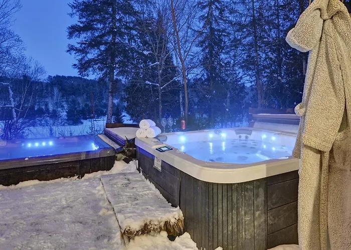 빌라는 Labelle의 중심에서 4km, Musee Ferroviaire Gare de Labelle에서 2.8km 정도 떨어진 곳에 위치합니다. Front River Private Beach 2 Hot Tubs 15 P Sauna에서는 실내 온도 조절기, 실내 온도 조절기, 다채널 TV가 있는 방이 제공됩니다.